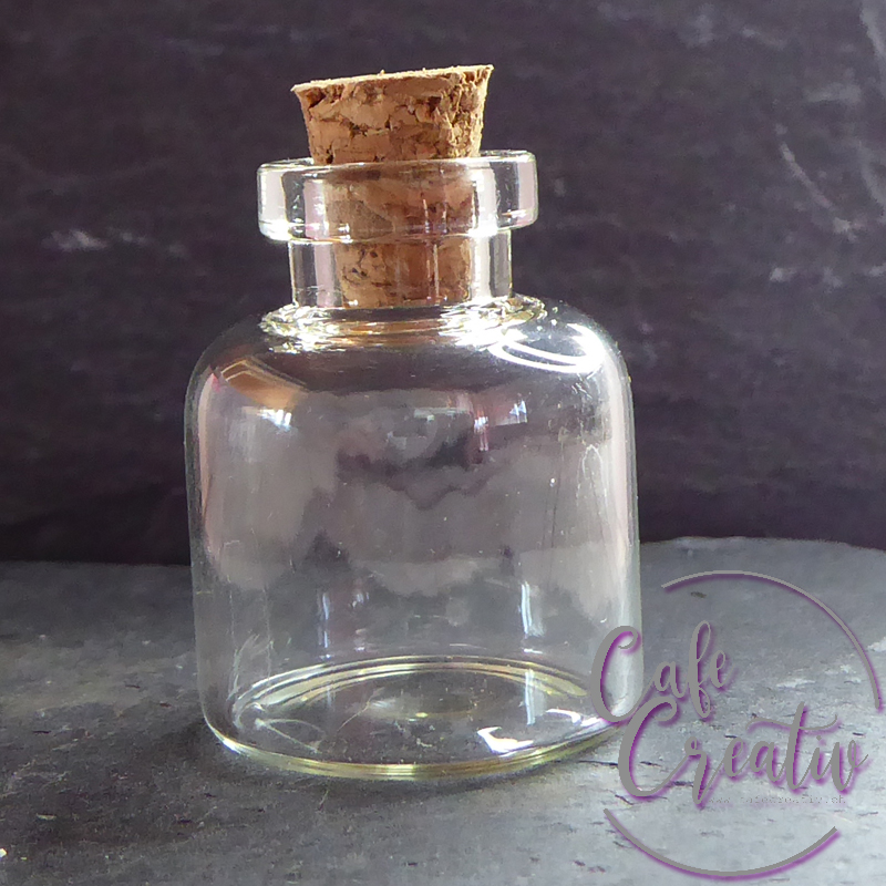 Zylinderförmiges Miniglasfläschchen mit Korkverschluss